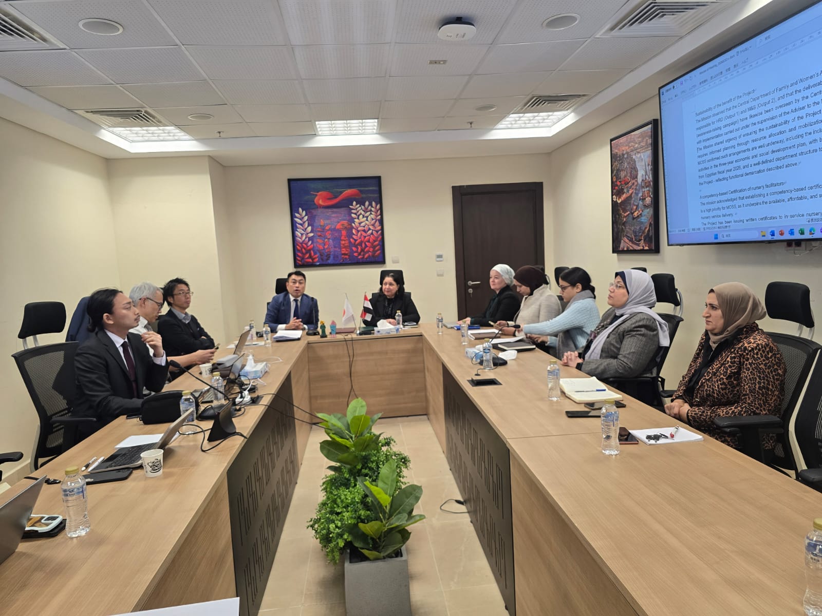 وشهدت فعاليات الزيارة، سلسلة من الاجتماعات المكثفة بين الجانبين برئاسة مرجريت صاروفيم، وبحضور الأستاذة رندة فارس مستشارة وزيرة التضامن الاجتماعي لشئون صحة وتنمية الأسرة والمرأة والطفل ومديرة برنامج «مودة»، والأستاذة حنان مصطفى رئيس الإدارة المركزية للأسرة والمرأة، والدكتورة هانم عمر مدير عام الإدارة العامة لشئون الطفل، والأستاذة أميرة تاج الدين مدير عام الإدارة العامة للعلاقات الدولية والاتفاقيات، إلى جانب السيد جينيترو يازاكي نائب رئيس مكتب جايكا مصر، والسيدة ناعومي ماتسوموتو كبير استشاري مشروع هيئة التعاون الدولي اليابانية «جايكا».