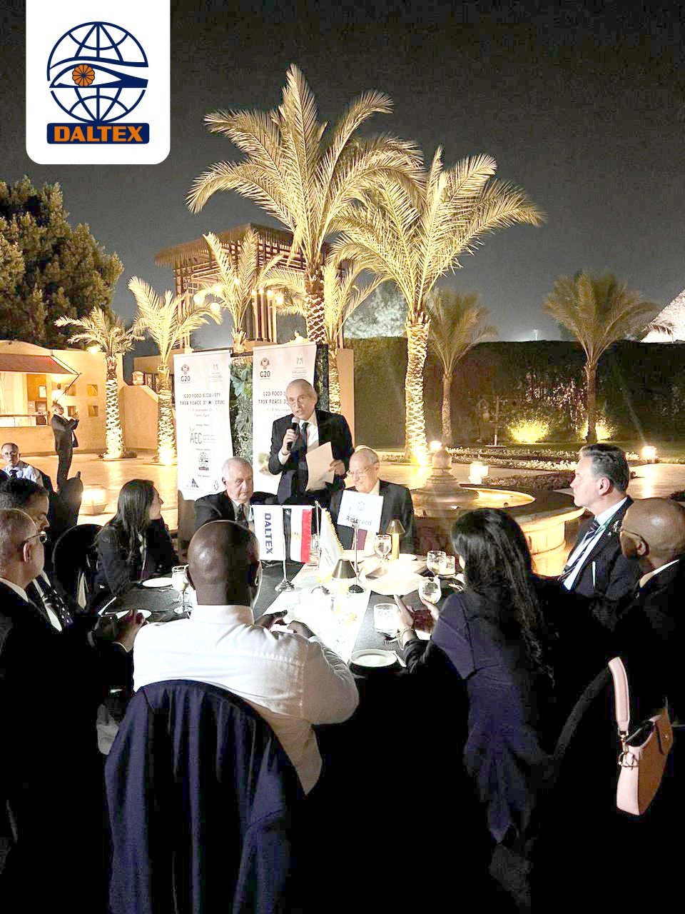 وفي هذا السياق، برز اسم شركة دالتكس كأحد أبرز الداعمين للحدث، بعد أن كانت الراعي البلاتيني للعشاء الرسمي لفريق عمل الأمن الغذائي لمجموعة العشرين، الذي نظمته وزارة الخارجية المصرية بفندق مينا هاوس، في حضور شخصيات رفيعة من بينهم وزير المالية أحمد كوشوك، والسفير رامي الإتربي ممثل مصر في المجموعة.