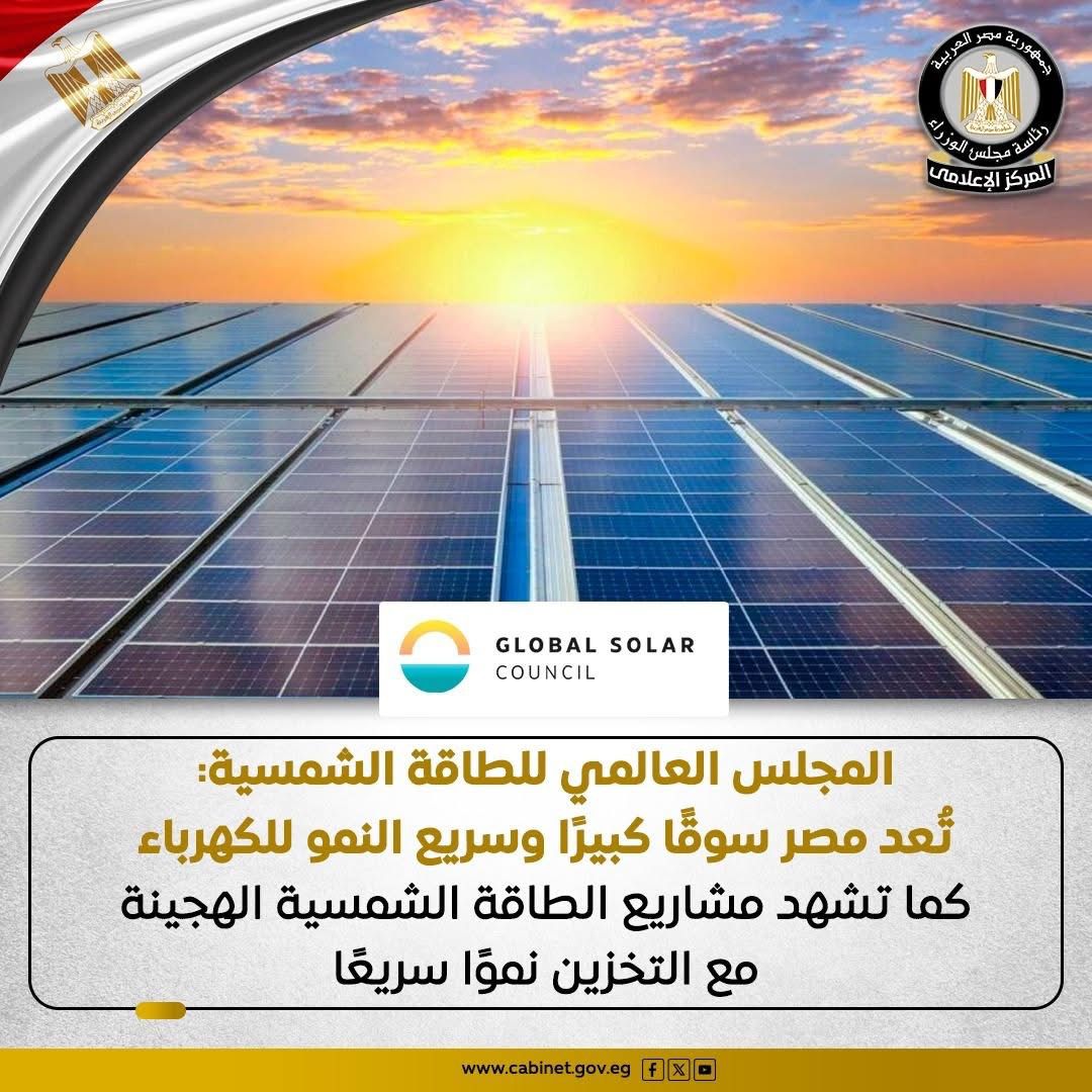 أشاد المجلس العالمي للطاقة الشمسية (GSC) في تقريره الصادر في فبراير 2026 بجهود الدولة المصرية لتنويع مصادر الإمداد ودعم صادرات الكهرباء، وفي هذا السياق، أعلنت شركة Scatec ASA النرويجية بدء التشغيل التجاري لمشروع محطة «أوبيليسك» للطاقة الشمسية في نجع حمادي، والذي يعد أول محطة هجينية للطاقة المتجددة في مصر، إذ يجمع المشروع بين توليد الكهرباء وتخزينها بقدرة 561 ميجاوات شمسية و200 ميجاوات/ساعة في المرحلة الأولى، و564 ميجاوات في المرحلة الثانية، مما يعزز استقرار الشبكة الكهربائية ومرونتها، وينوع مصادر الطاقة، ويبرهن على التزام مصر بمستقبل طاقة مستدام.