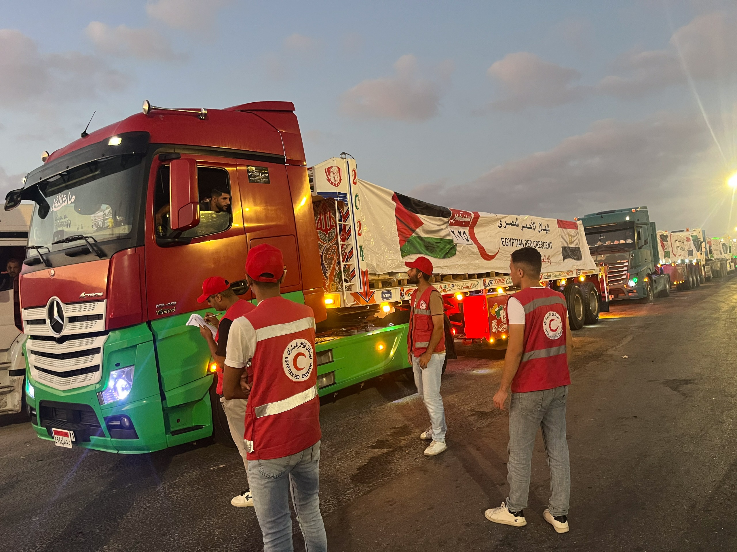 ويؤدي الهلال الأحمر المصري، باعتباره الآلية الوطنية لتنسيق وتفويج المساعدات إلى غزة، دورًا محوريًا في استمرار تدفق الدعم، حيث لم يُغلق معبر رفح من الجانب المصري منذ اندلاع الأزمة. كما يواصل الهلال الأحمر جهوده اللوجستية على مدار الساعة عبر شبكة مراكزه الميدانية والمتطوعين، والتي تضم أكثر من 35 ألف متطوع.