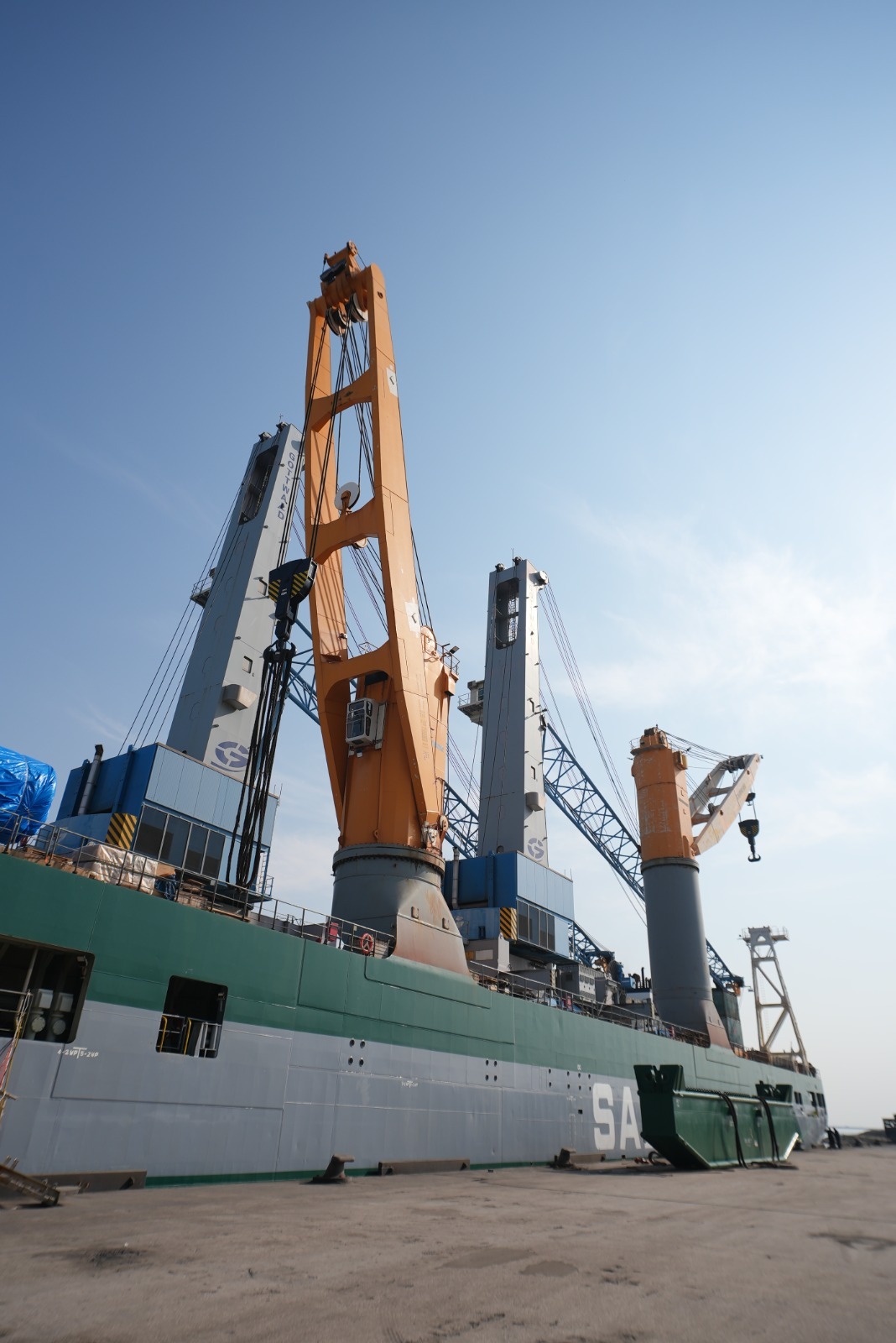 وتتميز الرافعتان بقدرة رفع تصل إلى 150 طنًا لكل منهما، ما يسمح بالتعامل مع سفن الصب الجاف العملاقة من فئة “Capesize” بسعات تصل إلى 200 ألف طن. كما تعمل الرافعتان بتقنيات متقدمة وأنظمة تحكم مركزية صديقة للبيئة، مع إمكانية التبديل بين أنواع الكباشات وفق متطلبات التشغيل.