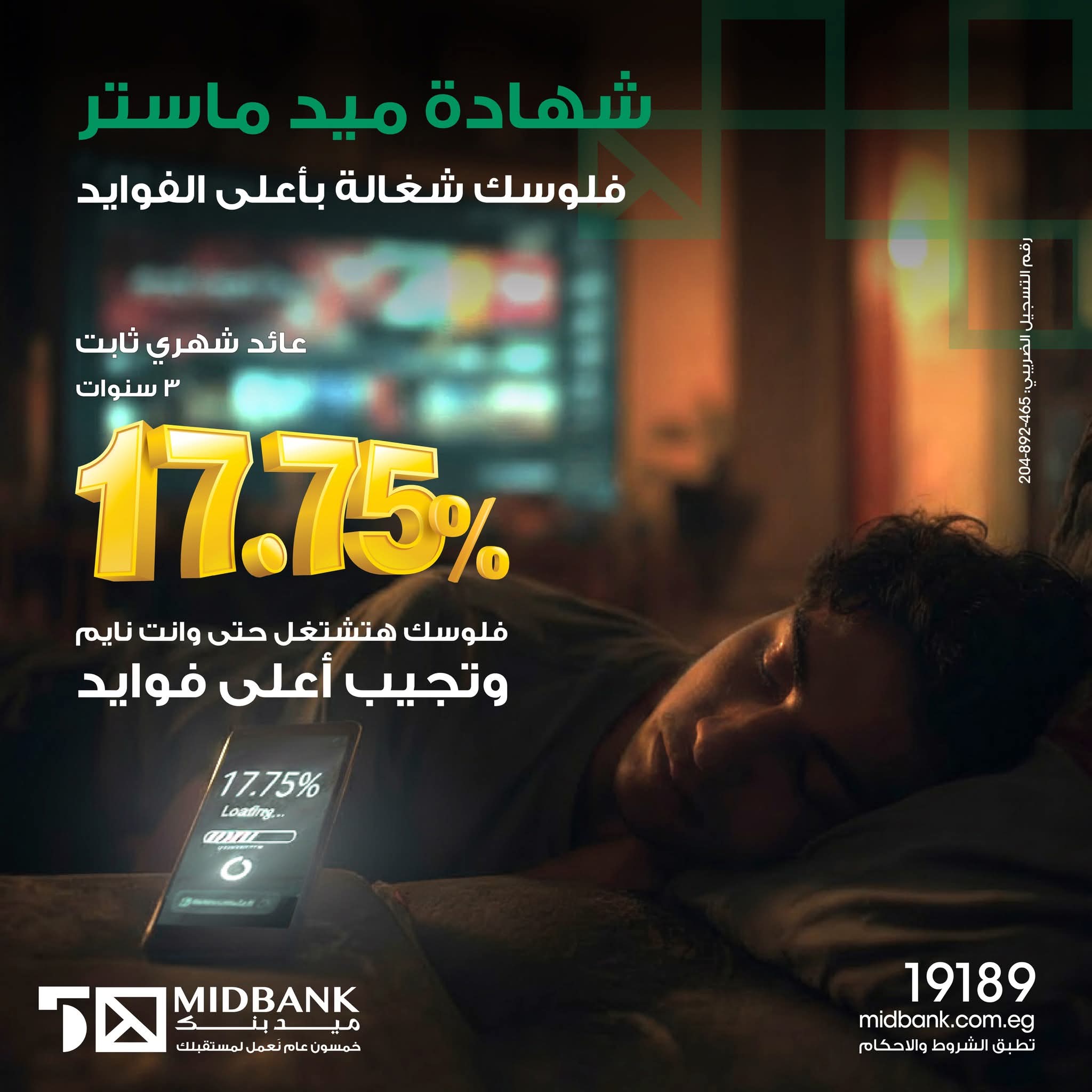 كشف ميد بنك عبر صفحته الرسمية على موقع «فيسبوك» عن طرح شهادة الادخار الجديدة «ميد ماستر»، التي تتيح للعملاء تحقيق أعلى عائد ثابت في السوق المصرفي المصري، بعائد شهري يصل إلى 17.75%.