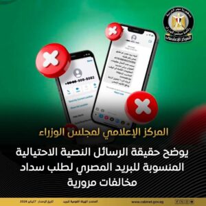 «مجلس الوزراء» ينفي صحة رسائل احتيالية منسوبة للبريد المصري بشأن مخالفات مرورية