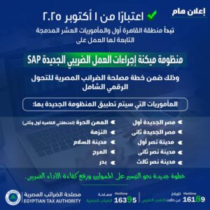 بدء تطبيق منظومة SAP الضريبية الجديدة بالقاهرة أول أكتوبر 2025